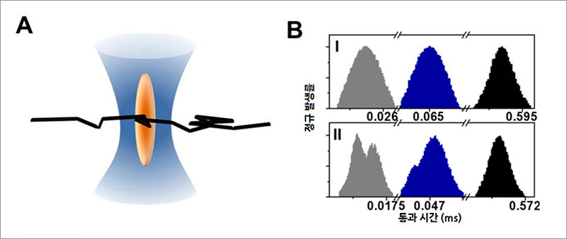 효소, 박테리아처럼 방향성 갖고 움직인다- 기존 가설 뒤집고 처음으로 효소의 반(反)-화학쏠림성 규명 - 기초과학연구원(IBS, 원장 김두철) 첨단연성물질 연구단 스티브 그래닉(Steve Granick) 단장(UNIST 자연과학부 특훈교수)과 연구진이 효소의 이동 기작에 대해 기존 가설을 뒤집는 연구 결과를 내놨다. 연구진은 그간 무작위 방향으로 운동하며 확산한다고 여겨졌던 효소가 박테리아처럼 방향성을 갖고 움직인다는 사실을 보고했다. 우리 몸에만 7만여 가지가 있는 효소(enzyme)1)는 생체에서 촉매 작용을 하는 단백질이다. 기질(반응물)은 효소를 만나면 화학 반응이 빨라지며 생성물이 되는데, 이 때 효소 자신은 변하지 않으면서 반응을 조절한다. 이러한 효소의 특성으로 생명 유지에 필요한 반응들이 제때 만들어진다. 효소의 움직임에 관심을 가진 것은 비교적 최근이다. 효소 분자는 촉매 작용 외에는 아무런 영향을 받지 않아, 브라운 운동2)을 해야 한다고 알려져 있었다. 하지만 효소가 기질이 있는 곳에서 확산3)이 빨라진다는 연구들이 연이어 나오면서 효소가 화학쏠림성4)을 가진다는 가설이 유력하게 제시됐다. 일반적으로 효소의 움직임을 관찰할 때에는 형광 상관 분광법(Flourescence Correlation Spectroscopy, 이하 FCS)을 쓴다. FCS는 레이저 빔을 시료에 쏴 빔 영역을 지나가는 형광 입자 정보를 얻는 분석법이다. 실험 대상인 효소에 형광 분자를 달고 FCS로 레이저 빔의 형광 변동을 감지한다. 레이저 영역을 지나는 입자 수, 확산 속도 등 통계적 정보를 얻는다. 연구진은 FCS 분석법에 그래닉 단장 연구팀이 보유한 강점 기술 STED(Stimulated Emission Depletion, 자극방출고갈현미경)5)를 접목해 레이저 빔 영역을 극도로 작게 만들었다. 보통 FCS의 레이저 빔 영역은 지름 250nm이다. 효소 지름인 10nm의 25배 길이에 해당한다. 반면 STED-FCS는 빔 영역을 50nm로 줄일 수 있다. 큰 빔 영역에서는 관찰할 수 없었던 미시적인 효소 움직임을 STED-FCS로는 보다 자세하게 파악할 수 있는 이유다. 연구진은 두 번의 실험을 진행했다. 먼저 기질과 효소의 상호작용만을 보고자 위치에 따라 농도 차가 나는 칩을 설계했다. 일반 FCS를 이용해 효소인 우레아제의 움직임을 관찰한 결과 기존 연구와는 반대로 효소가 기질이 적은 쪽으로 이동함을 발견했다. 기질이 많은 쪽에는 효소농도가 낮았고, 기질이 적은 쪽에 효소 농도가 높았다. 기존의 화학쏠림성 가설을 뒤집고 반대 방향으로 움직이는 반-화학쏠림성을 처음으로 확인한 것이다. 다음으로 같은 칩을 STED-FCS로 관찰해 흥미로운 점을 발견했다. 효소가 한 방향으로 가다가 무작위 방향의 움직임을 반복하는 ‘달리기와 뒹굴기(run&tumble)’를 보인 것이다. 달리기와 뒹굴기는 먹이를 효율적으로 찾고자 직진과 무작위 방향 운동을 반복하는 박테리아의 움직임으로 잘 알려져 있다. 박테리아가 먹이 쪽으로 움직이는 반면 효소는 기질이 적은 쪽으로 움직인다. 반응 체계가 없는 효소가 이같이 움직이는 이유는 효소가 촉매작용을 하면서 기질 반대방향으로 밀려나기 때문이다. 제1저자인 지아영 연구위원은 "단백질 분자에 지나지 않는 효소가 마치 박테리아나 세포 등 미생물처럼 방향을 갖고 움직였다”며 “앞으로 여러 효소간의 상호작용을 비롯해 신진대사 연구에 큰 도움이 될 것”이라고 밝혔다. 이번 연구에 이론적인 이해를 제공한 츠비 틀루스티(Tsvi Tlusty) 그룹리더는 “효소가 기질을 피하는 것은 선뜻 이해되지 않는 결과”라며 “효소의 촉매작용이 강력하기 때문에 반응이 한꺼번에 일어나지 않도록 조절하는 기작일 수 있다”고 설명했다. 이번 연구결과는 미국 국립과학원에서 발간하는 PNAS(Proceedings of the National Academy of Sciences, IF=9.661)에 12월 19일 새벽 5시(한국시간) 온라인으로 게재됐다. 그림설명