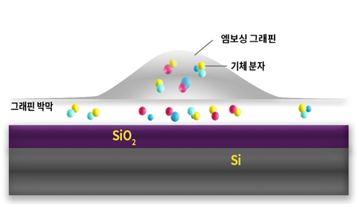 기판 위에 그래핀 박막을 올린 후 가열해 기판표면에 흡착되어 있던 불순물 분자들을 기화되며 그래핀 안에 갇히어 볼록하게 돌출된 엠보싱 그래핀을 만들었다. 연구진은 라만 분광법을 이용해, 평평한 그래핀 격자에 굴곡이 생기면 탄소 원자간 거리가 늘어나고 장력(tension)이 생기면서 탄소 원자간 결합력이 약해져 화학적 반응성이 높아지는 것을 확인했다. 마치 고무줄을 계속 잡아당기면 양 끝단의 거리가 늘어나고 팽팽해지면서 결국 끊어지게 되듯이, 원자간 결합이 약해지기 때문에 외부 요소에 의한 반응이 일어날 가능성이 높아진다.
