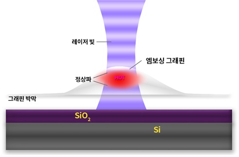 추가적으로 연구진은 엠보싱 그래핀의 국소부분을 가열하고 라만분광법으로 측정한 수치를 바탕으로 해당 위치의 온도를 계산값으로 산출해 냈다. 이를 이용해 엠보싱 중심점에서 가장자리로 열이 확산되는 속도를 측정해 그래핀 고유의 특성인 높은 열전도성을 확인했다. 이번 연구 전까지 엠보싱 그래핀 내부의 온도를 측정하는 연구는 거의 없었으며, 열전도도 측정도 복잡한 과정을 수반했다. 더 나아가 연구진은 라만 분광법의 단일 파장 레이저 조사가 엠보싱 그래핀의 온도를 상승시킴에 착안하여, 엠보싱 그래핀의 온도를 제어하는 방법을 알아냈다. 엠보싱 그래핀 위에 레이저 빛을 조사하면 입사광과 반사광이 겹치면서 한정된 공간 안에 갇혀서 제자리에서 진동하는 파동인 정상파가 형성된다. 특히 엠보싱 그래핀 중심점에 조사시 최대 정상파가 형성되어 온도가 가장 높아졌고, 가장자리로 갈수록 정상파 형성이 어려워 온도가 낮아진다. 또한 레이저 빛의 강도에 따라 온도 변화의 폭이 결정됨을 실험적으로 밝혀냈다. 레이저 조사 위치와 빛의 강도에 따라 온도를 자유자재로 제어할 수 있게 된 것이다.
