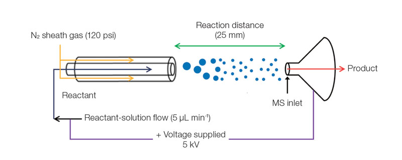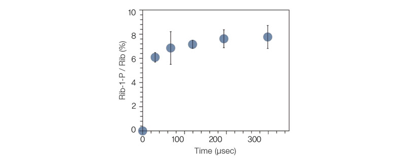 T he occur rence of diver se metabolic reactions is confined to intracellular space inside of an organism. In order to capture a phosphorylation reaction occurring in physically cell-like environments, the researchers chose micrometer-sized droplets and observed that sugar phosphates are produced there within a few microseconds. Unlike in bulk solution, the entropy in the droplets does not decrease; the surface electrical field of the droplets alters the material orientation and reaction energy, which presumably made the reaction possible.
