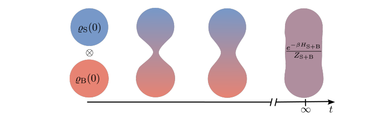 In isolated quantum systems, correlated quantum states are essential for all emerging quantum technologies and have led to the 2022 noble prize in physics. However, in open quantum systems the correlations (quantum or classical) between the system of interest and the reservoir are typically ignored under the Born approximation. Several attempts have been made to overcome this highly restrictive assumption but a rigorous theory has been lacking. Recently, research team led by Dr. Juzar THINGNA of the Center for Theoretical Physics of Complex Systems (PCS) within the Institute for Basic Science (IBS) presented an approach that allows correlations between the system and reservoir to build over time and correctly accounts for the long-time correlations as dictated by statistical mechanics (cf. illustration). Their approach uses the long-time highly correlated system-reservoir state (quantum canonical Gibbs state of the system-reservoir composite) and incorporates this knowledge in the dynamical theory resulting in the canonically consistent quantum master equation (CCQME). Surprisingly, the CCQME drastically improves upon the long-standing issue of unphysical negative probabilities, a common occurrence in approaches that rely on the Born approximation (e.g. Redfield equation). Using a variety of models, that range from a damped harmonic oscillator to a dissipative spin chain, the group showed that their approach correctly reproduces the correlations built up in the regime of strong system-reservoir coupling. Their theory paves a way to re-investigate nonequilibrium physics in presence of system-reservoir correlations impacting the fields of open quantum systems, quantum transport, and quantum thermodynamics. Notes for editors