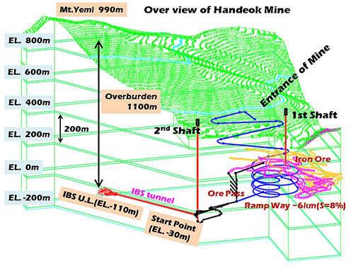 Uncovering the secrets of dark matter and neutrinos in 1,100m deep underground- Institute for Basic Science (IBS) signed an MoU (Memorandum of Understanding) with Jeongseon county and Handeok Iron Mine for construction of a new astro-particle physics underground research facility - Center for Underground Physics (CUP, Director KIM Yeongduk) of IBS will construct an astro-particle research facility at 1,100m below the surface in an iron mine located in Jeongseon county, Gangwon province, South Korea. With a planned funding of 21 billion won, the construction of a 2,000m2 experimental area directly below the summit of the Mount Yemi will be completed by 2019 and the center's two major experiments are expected to start from the following year.