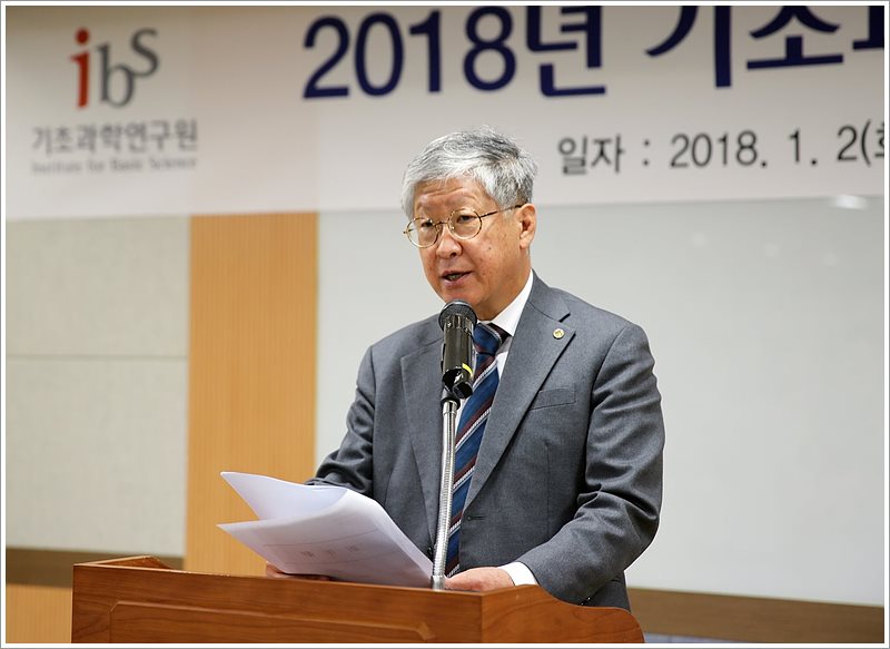 IBS starting the New Year with the 2018 Kick-off Meeting- President KIM Doochul promises to expand HQ Centers, IBS held the 2018 Kick-off Meeting at the HQ in Daejeon on January 2. President Kim Doochul took the stage and delivered New Year’s greetings, sharing the Institute’s direction for 2018. After the speech, he awarded outstanding employees and teams. President Kim stressed that all IBS employees should hold a sense of responsibility as they look toward a fresh start at the new headquarters. “All members of IBS should be proud and feel responsible that we are leading the future of science at EXPO Science Park, a historic landmark. The theme of the EXPO, “The Road to a New Leap” still applies and IBS needs to embrace it,” said Kim. He also applauded and commended IBS members by stating “The Institute’s international presence has grown significantly for the last six years and it would not have been possible without your dedication.” He also added, “We should always feel a great sense of responsibility for the support and venture beyond limitations.”
