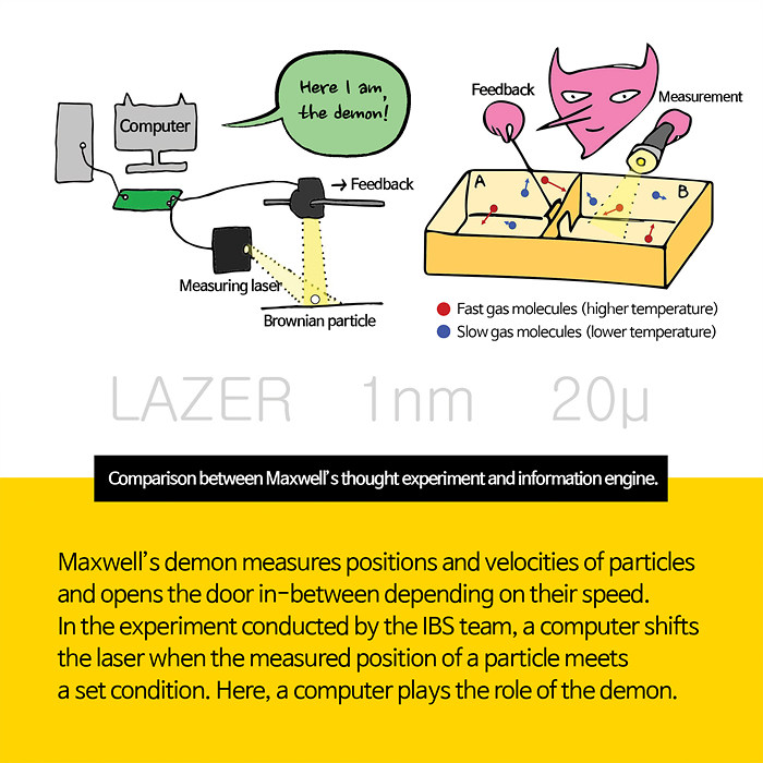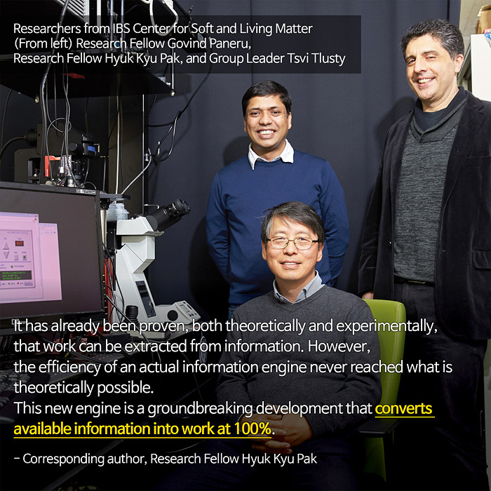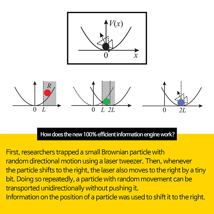 Information engine = A device that converts information into work. What are the implications of a lossless information engine realized by a research team of the IBS Center for Soft and Living Matter?