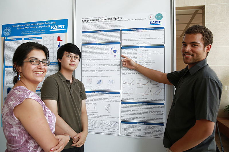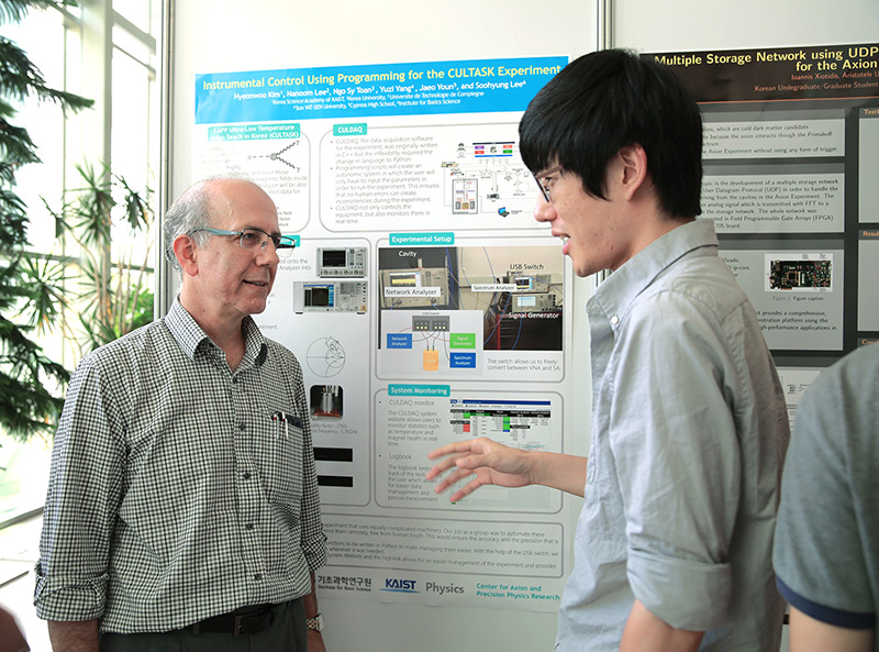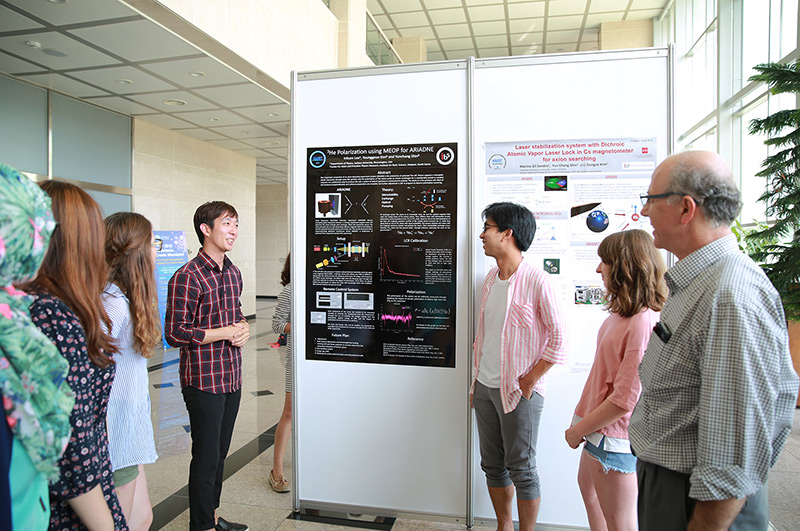 미래 물리학자를 위한 KUSP 2016, 5주간 일정 성공리 완료- 실험물리분야 우수인력 양성 기여 … 10개국에서 IBS 찾아 - 기초과학연구원(IBS, 원장 김두철) 액시온 및 극한상호작용 연구단(단장 야니스 세메르치디스, Yannis K. Semertzidis)이 주최한 다국적 교육프로그램 'KUSP(Korea Undergraduate/graduate/high school Science Program) 2016’이 5주간의 일정으로 성공리에 마무리됐다. KUSP는 물리학 분야에 역량있는 대학(원)생 및 고등학생들에게 연구 기회를 제공하고자 작년에 시작한 다국적 교육 프로그램이다. 올해는 한국을 비롯해 중국, 그리스, 미국, 레바논, 터키 등 다양한 나라에서 현대물리학에 관심 있는 고등학생, 대학생, 대학원생 등 약 40여 명이 참여했다. KUSP 참가 학생들은 표준모델, 초대칭이론 등 관련 주제를 선택하고, 지도연구원을 배정받았다. IBS와 KAIST 연구진들과 함께 실험과 연구를 진행하며, 학교에서 배운 이론을 구체화했다. 최신 물리학 강연과 연구 활동뿐만 아니라 한국어 수업, 다양한 문화 활동, 현장학습도 진행돼 참여 학생들이 과학적 소양과 국제적 안목을 넓히는 기회가 됐다. KUSP는 8월 5일 성과보고 포스터 전시회와 수료식을 끝으로 5주간의 일정을 마쳤다. 참가 학생들이 KUSP 프로그램을 통해 성취한 연구성과를 공유하는 포스터 전시회는 KAIST 대덕캠퍼스 궁리실험관(E6-5) 1층 로비에서 오는 11일까지 진행된다.
