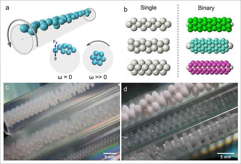 1) 원통형 입자 조립은 자연계에 흔하다. 박테리오파지 꼬리나 세균의 섬모, 세포의 골격에 이르기까지 실 모양의 세포기관도 원통형으로 형성된다. 2) 실험에 사용된 입자는 구(球) 모양의 폴리프로필렌(polyproplylene)이다. 폴리프로필렌은 플라스틱을 만드는 주요 재료 중 하나다. 플리프로필렌보다 무거운 액체로는 하이드로겔인 아가로스(Agarose)겔을 사용했다. |