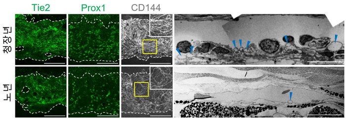 또한 연구진은 노년기에 접어든 쉴렘관에서는 ANG-TIE2 신호전달체계가 점차 감소해 쉴렘관의 항상성이 떨어짐을 확인했다. ANG-TIE2 신호전달체계의 감소는 Prox1 전사인자의 발현 감소 및 쉴렘관 내피세포 수 감소로 이어진다. 연구진은 “노년기의 방수유출기능이 청장년기에 비해 떨어짐을 짐작할 수 있다고 덧붙였다.”
