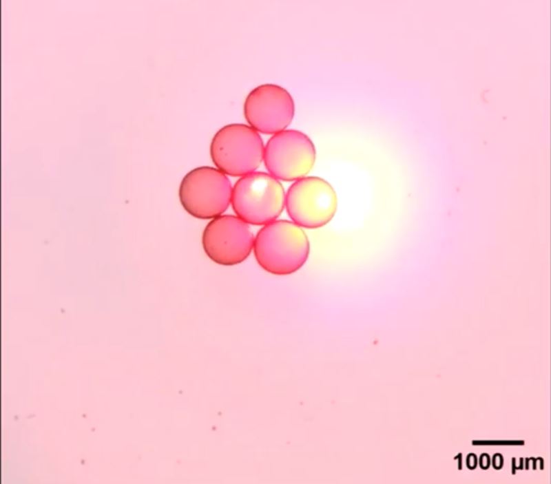 다음으로 레이저 빔을 사용해 빛에 대한 반응을 확인했다. 나노 계면활성제로 싸인 액체방울에 레이저 빔을 쏘면 액체방울들은 회전하면서 육각형 구조를 만든다. 빽빽하게 조립된 육각 구조의 액체방울은 레이저 빔이 꺼지면 흩어진다. 이는 따뜻한 공기는 위로, 차가운 공기는 아래로 내려가는 대류현상 때문인데, 이를 이용해 레이저를 쏘는 부분에 따라 회전 속도와 회전 방향도 조절해 톱니바퀴처럼 움직이도록 조종할 수도 있다.