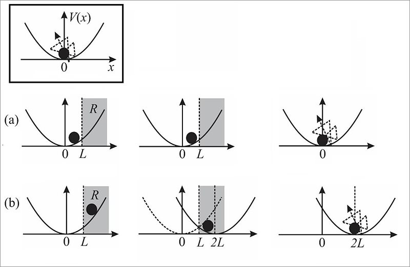전통적으로 엔진이 바꿀 수 있는 일의 양은 열역학 제2법칙에 의해 제한됐다. 그러나 맥스웰 도깨비가 제안된 후 과학자들은 도깨비가 분자의 위치와 속도‘정보’를 온도 차를 만드는 ‘일’로 바꾼다는 것을 증명했다. 이후 열역학 제2법칙을 뛰어 넘을 수 있는 정보 엔진의 개념이 등장했다. 정보 엔진은 맥스웰의 도깨비와 마찬가지로 정보를 이용하는 원리다. 자연스럽게 정보를 고려해 열역학 제2법칙이 새롭게 수정됐고, 최근에 과학자들은 실제로 정보 엔진을 만들었다. 과학자들은 정보 엔진의 효율을 높이려 계속 시도했으나 이전까지는 최대 75%에 지나지 않았다. 이번 연구의 핵심은 효율 100%의 정보 엔진을 실현했다는 데 있다. 연구진은 정보를 일로 전환할 수 있도록 주어진 온도에서 무작위한 방향으로 브라운운동2)을 하는 작은 입자를 레이저 집게로 가두고, 입자가 오른쪽으로 치우칠 때마다 레이저를 아주 조금씩 오른쪽으로 이동시켰다.