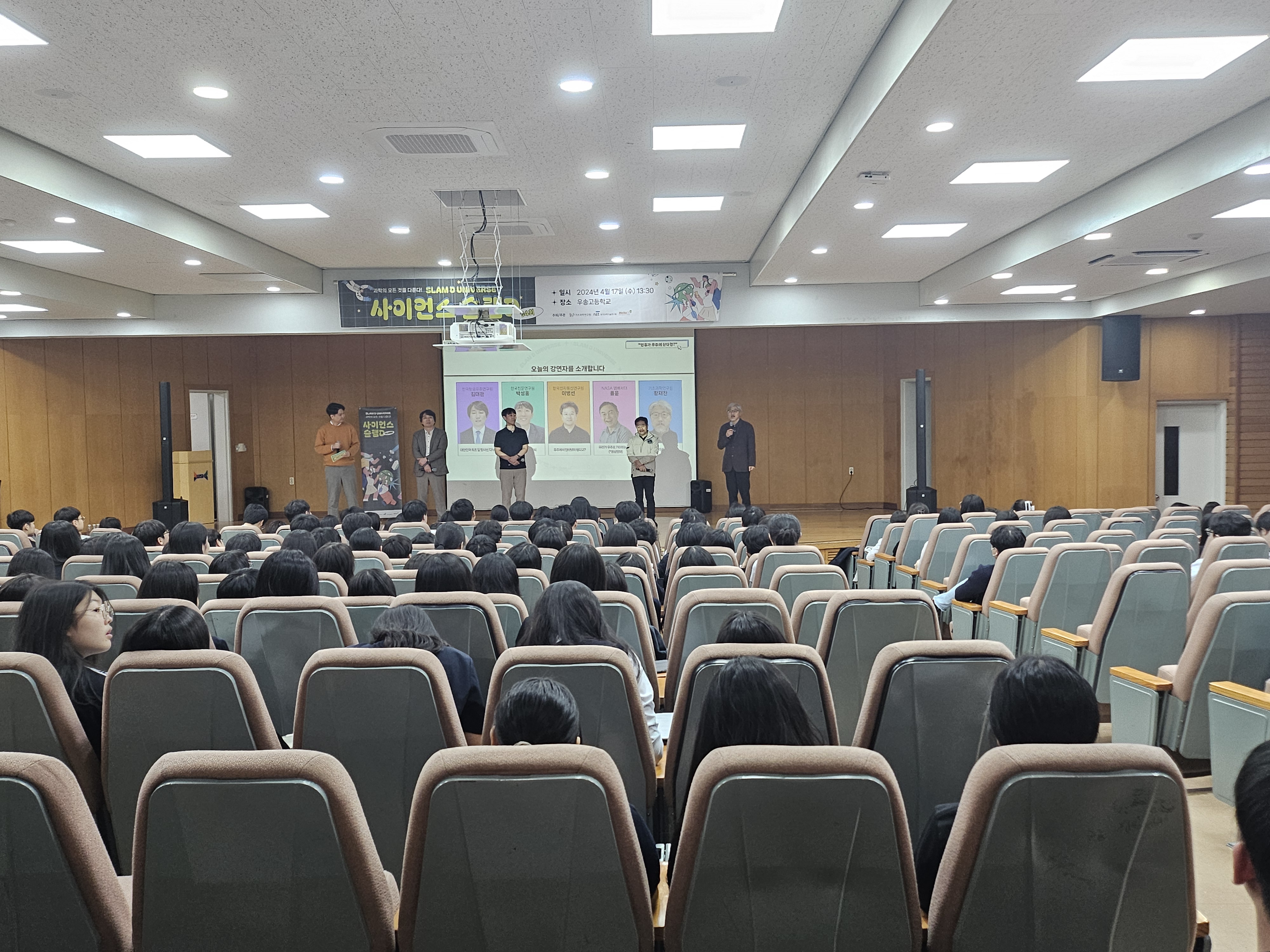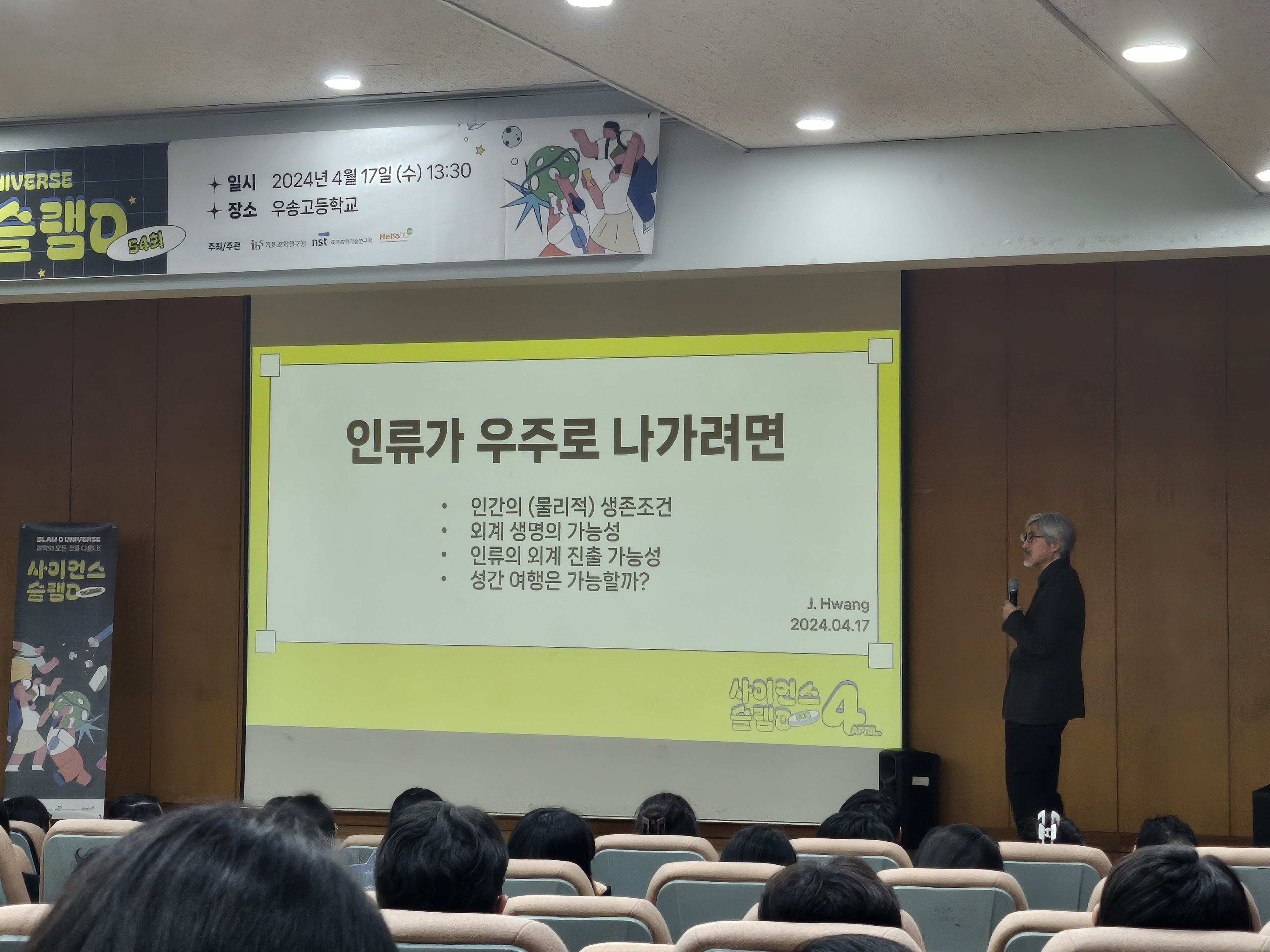 '사이언스 슬램D'... 인류의 우주에 대한 열정 공유기초과학연구원(IBS), 국가과학기술연구회(NST), 대덕넷이 공동으로 주최하는 유쾌한 과학 대중 강연 '사이언스 슬램D'가 지난 17일 대전 우송고등학교에서 열렸다. 기초과학연구원 황재찬 연구위원을 비롯한 다섯 명의 연사들이 참여한 '사이언스 슬램D'는 ‘인류가 우주에 산다면’이라는 주제로 진행되었다.