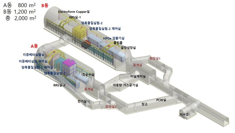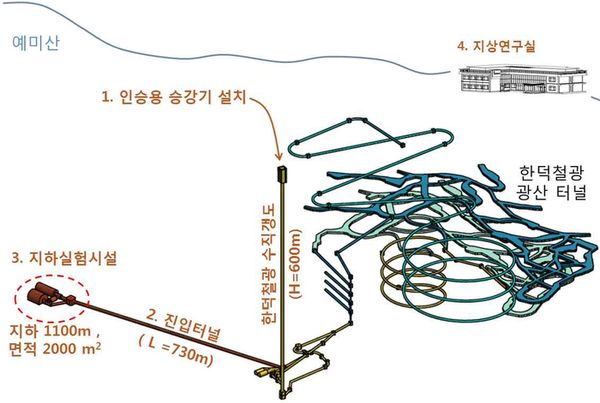 우리원 지하실험 연구단(단장 김영덕)이 강원도 정선군 철광 지하 1,100에 우주입자연구시설을 구축한다. 연구단은 정선군 신동읍 예미산 일대 한덕철광의 철광 지하 1,100m 아래 약 2,000m2 규모의 연구시설을 2019년까지 지을 계획이다. 지하 연구시설 조성에 약 210억 원이 투입될 예정이다. 본격적인 실험은 2020년부터 시작된다.