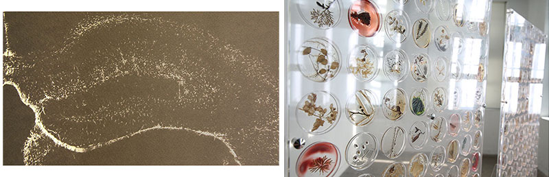 특명! 과학자의 예술작품을 찾아라!대전시립미술관 '팝업랩' 전시에 IBS 연구자 참여 # 검정 배경에 흰 무늬들이 궤적지어 그려져 있다. 밤하늘에 보이는 은하수를 찍은 사진일까? 오래 전 생물 교과서에서 본 것 마냥 익숙함도 느껴진다. 자세히 보니 붓 자국 없이 매끈하고 선명하다. 사진일까? 회화일까? 이미지가 표현하는 것은 무엇일까? # 동그랗고 투명한 샬레들 안, 다양한 식물의 잎과 가지가 붙어 있다. 자세히 보니 플라스틱 꽃도 있다. 바닥에 곰팡이가 피어오른 듯 회색인 샬레도 보인다. 샬레 안은 자연의 시간이 멈춘 듯 외부의 방해 없이 내용물들이 보호되고 있다. 누구의 작품일까? 식물을 연구하는 과학자가 만든 작품일까? 아니면 예술가가 식물을 대상으로 만든 작품일까?