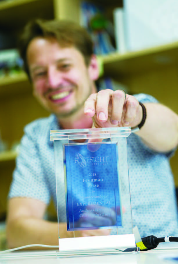 미국의 선구적인 물리학자 리처드 파언만은 인간의 모든 정보가 아주 작은 세포 하나 속에 있는 사슬 모양의 DNA에 담겨 있듯이, 브리태니커 백과사전 24권의 모든 내용을 하나의 핀 머리에 기록할 수 있다며 나노기술의 무한한 가능성을 예견했다. 또한 파인만은 인간이 원칙적으로 개개의 원자를 하나하나 우리가 원하는 방식으로 배얼할 수 있는 나노기술을 개발할 수 있고, 이를 통해 원자 단위의 화학적 합성이 가능할 것이라고 제한했다. 그의 예견대로 오늘날 나노기술의 발전은 그 한계를 알 수 없을 정도로 커다란 변화를 가져왔으며 나노세계에 대한 탐구는 계속되고 있다. 하지만 나노세계는 고전역학과는 상이하고 난해한 양자역학의 지배를 받기 때문에 연구하기 쉽지 않다. 예를 들어 원자의 구성요소 중 하나인 전자는 그 질량이 너무 작아 외부(빛)와 상호작용을 하면 위치가 계속 바뀌게 된다. 즉, 전자는 양자역학의 확률을 갖고 동시에 여기저기 존재할 수 있다. 양자나노과학 연구단을 이끌고 있는 안드레아스 하인리히 이화여대 석좌교수는 주사터널링현미경(STM)의 성능을 개선해 표면 위 원자의 양자역학적 성질을 연구해 온 선구자이다. 이화여대에 자리한 양자나노과학 연구단은 표면 위의 원자를 이용해 양자계산의 실현가능성을 규명하고자 한다. 내년 3월 새로운 연구동 건물의 준공을 앞두고 있는 양자나노과학 연구단의 하인리히 단장을 만나 양자나노과학의 신비와 가능성에 대해 들어봤다. 파인만 상, 조셉키슬리상 잇달아 수상"10년 이상 연구한 성과를 국제 과학계로부터 인정받은 것이라 생각합니다. 한국에서도 이와