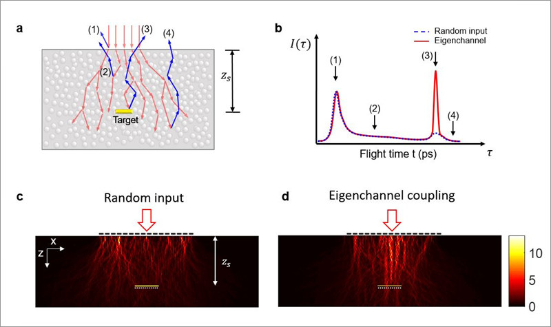 Light is Enough to Peer Through a Mouse Skull- Selectively guided light waves reach biological targets, invisible to current optical imaging - Having selected proper light waves, researchers at the Center for Molecular Spectroscopy and Dynamics, within the Institute for Basic Science (IBS) have demonstrated a more than 10-fold improvement of light energy delivery to targets that are too deeply embedded to visualize with current optical imaging. Able to picture through a young mouse skull in the laboratory, this non-invasive technique does not cause any damage to tissues and does not need injections of fluorescent molecules to label the target. Published in Nature Photonics, this work might lay a foundation for in vivo experiments that use light in biomedical imaging, optogenetics, tumor treatment, and for recharging implanted medical devices. Entering a complex and opaque environment like a human or animal body, light trajectory is deviated by all the components it finds on its way. For this reason, only a small fraction of light waves propagating inside biological tissues can actually reach the desired target, while the majority is scattered and randomly diffused. This multiple wave scattering hinders most applications of optical imaging for deep biological samples. IBS scientists found a strategy to maximize the intensity of waves that interact with the target over the waves that do not, which depends on the time it takes for the waves to travel to the target and be reflected back.