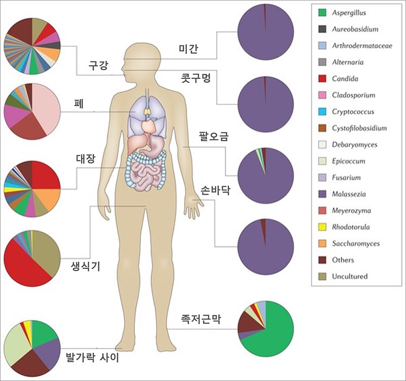사람을 살리는 ‘대변’ 속 미생물의 힘답은 대변 속에 존재하는 미생물 무리에 있다. 우리 몸에는 보이지는 않지만 체세포 수의 10배(인간의 체세포가 평균 10조 개라면, 미생물 수는 100조 개 정도로 추정된다)나 되는 박테리아, 바이러스, 원시세균 등의 미생물들이 옹기종기 모여 산다. 이를 한데 뭉뚱그리면 1~1.5kg 정도나 되고, 유전정보는 사람의 100배나 될 것으로 추정된다. 미생물들은 입, 코, 귀, 전신의 피부, 생식기, 겨드랑이, 장 등 다양한 곳에 살고 있지만 위장관, 특히 대장에 가장 다양한 종류가 가장 많이 살고 있다. 대변에는 대장에 살고 있는 미생물들이 포함되어 배출되는데, 대변에서 수분을 뺀 나머지의 40% 정도가 미생물이다.