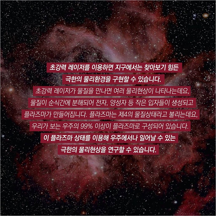 세계에서 가장 강력한 레이저가 한국에 있다는 사실, 알고 계셨나요? 4PW(페타와트) 레이저를 이용해 극한 물리학의 새 지평을 엽니다!