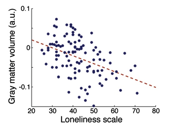 61~82세의 노년층을 대상으로 한 연구에서도 유사한 결과가 나타났다. 외롭다고 느끼는 정도가 클수록 감정과 지각의 중추인 뇌 좌측 편도체와 회색질의 부피가 작은 것으로 나타났다. 이밖에도 지속적인 외로움은 기억과 정보 저장에 중요한 역할을 하는 해마, 사회적 관계를 인지하는 뇌 부위 등의 구조를 변화시킨다.