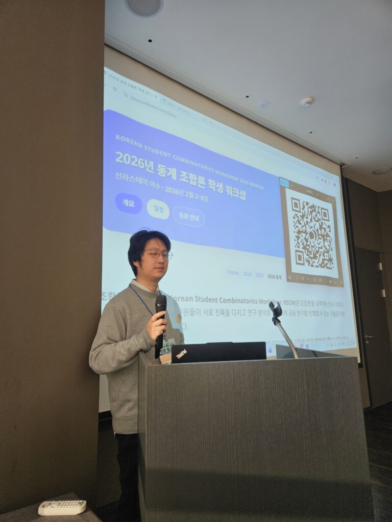 The 2026 Winter Korean Student Combinatorics Workshop (KSCW 2026 Winter) will be held from February 2 to 6, 2026, at Shilla Stay Yeosu, with support from IBS ECOPRO.