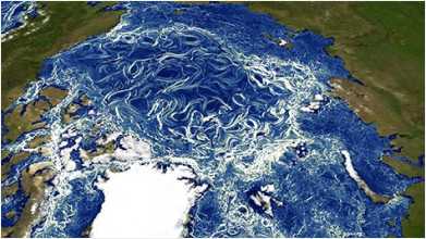 ‘중규모 수평 교란(mesoscale horizontal stirring)’은 바람, 해류, 그리고 바다 속 소용돌이 등이 만들어내는 거대한 물결 섞임 현상이다. 수십에서 수백 킬로미터 규모로 바닷물이 수평 방향으로 휘저어지며, 열과 영양분이 퍼지고 플랑크톤이나 어란·유충, 미세 플라스틱과 같은 오염 물질 확산에도 영향을 미친다.