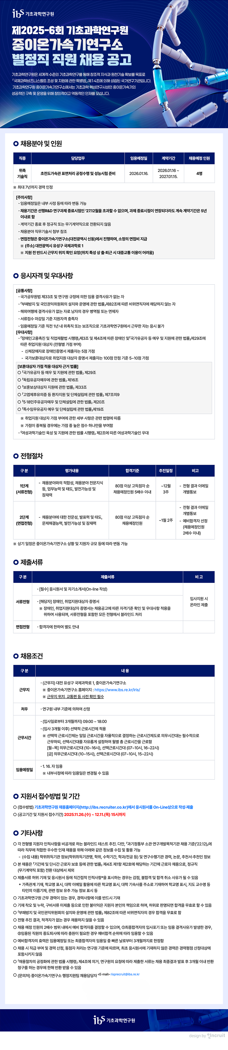 제2025-6회 기초과학연구원 중이온가속기연구소 별정직 직원 채용 공고